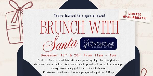Mark your calendars for December 13th or 20th and join us for a delightful festive brunch at The Longholme! Rumour has it that Santa and his trusty elf will be making special appearances at select tables to spread some holiday cheer. While there is no entry fee, a £10 per person minimum spend will apply. This amount is paid at the time of booking and will be deducted from your food and drinks bill during your visit. Please note that these deposits are non-refundable. Children will also receive a fun gift! Parents, don’t forget to leave Santa some hints in your booking notes, including your children's names, ages, and hobbies to enhance the magic at your table! -